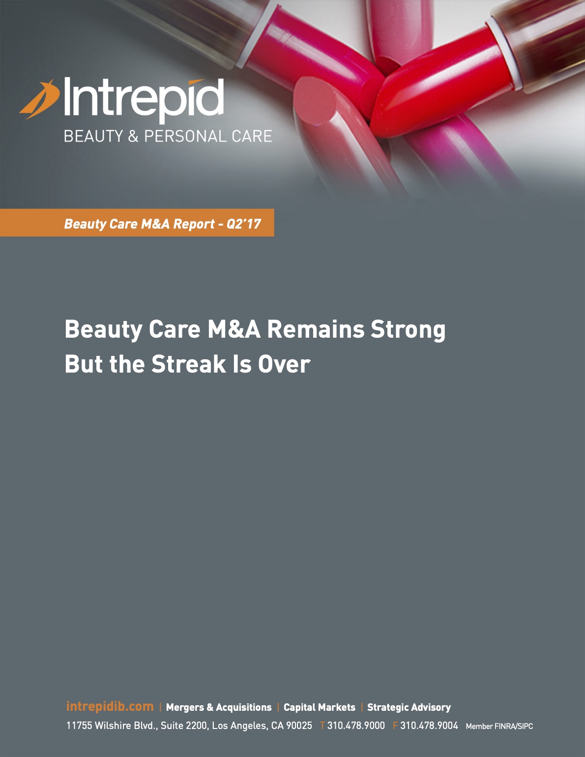 However, the nine quarter streak of increases in deal volume over the prior year period ended with Q2’17 deal volume down slightly over both Q2’16 and Q1’17. Given the high deal volume and continued deal activity, we do not see this as a sign of a slowing Beauty Care M&A market—simply as an unsustainable trend and the end to a fun statistic to watch over the last two years.