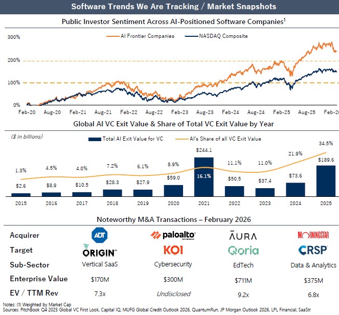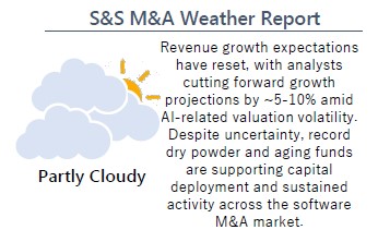 • AI optimism has given way to a more selective market. Software companies with clear AI upside are being rewarded, while narrative laggards face multiple compression, resulting in a ~10%reset to 2026 EPS expectations across the S&P North American Software Index.