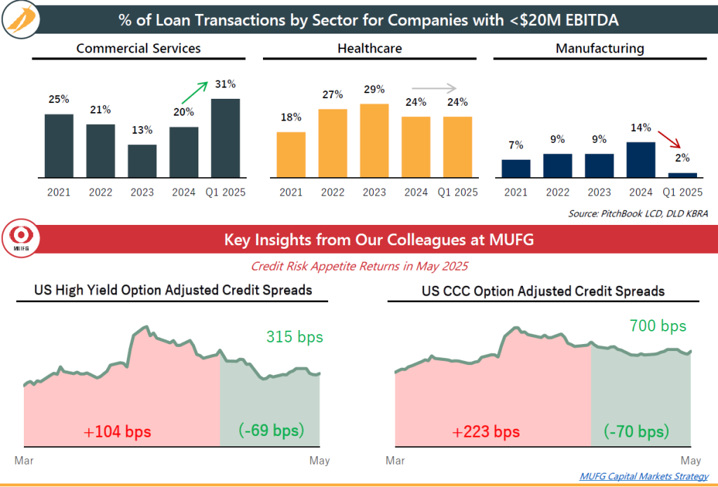 • Commercial Services – Largely insulted from tariff uncertainty, businesses that cater to the needs of commercial clients are enjoying a period of relative brightness. Thanks to diversified sub-verticals and an integral role in business operations, this sector has garnered significant interest from investors during these uncertain times.