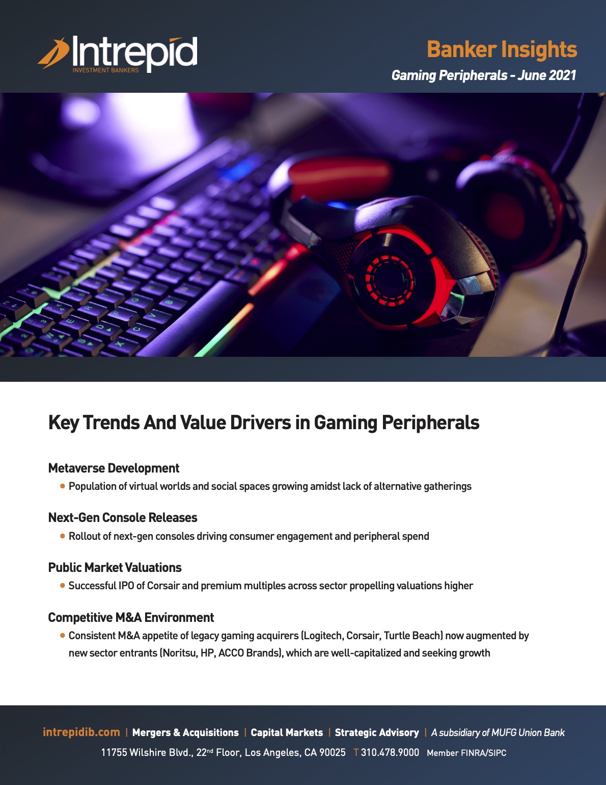 2020 proved to be a record year for our Commercial & Consumer Technology practice, which closed transactions across gaming, pro audio, consumer electronics, and residential technology. We believe that many of the positive trends in our industry that have surfaced over the past year are here to stay, particularly in the Gaming Peripherals sector. This presents massive opportunities for entrepreneurs in this space to thrive and will drive the need for capital and strategic partners.