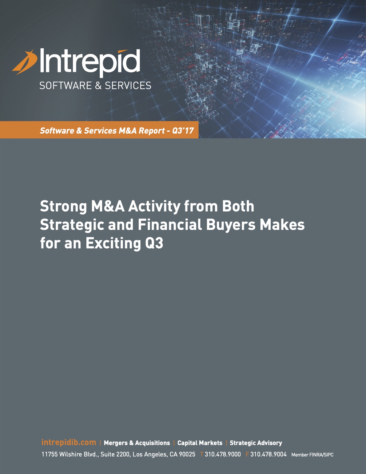 In addition to large-scale strategic acquirer interest, financial sponsors in key technology markets also stepped up to the plate. M&A activity from private equity groups and venture capital investors has ramped up substantially in 2017, with notable acquirers like Vista Equity Partners, SoftBank and New Enterprise Associates announcing hallmark investments in Q3. Alongside increased deal activity also comes new fund closings being announced on an almost daily basis. Intrepid expects these trends to continue for the foreseeable future.